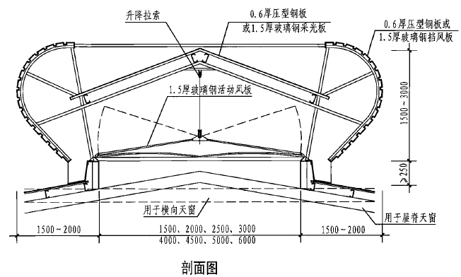 通風(fēng)氣樓剖視圖